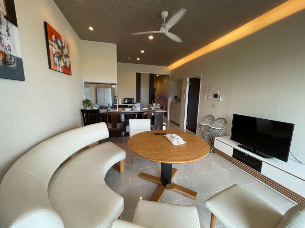 ただ、こちら海では夕日が見えないのと、内装の感じが1件目にみた「オーシャンリゾート前田岬」よいりもややグレードダウンしている感じあります。