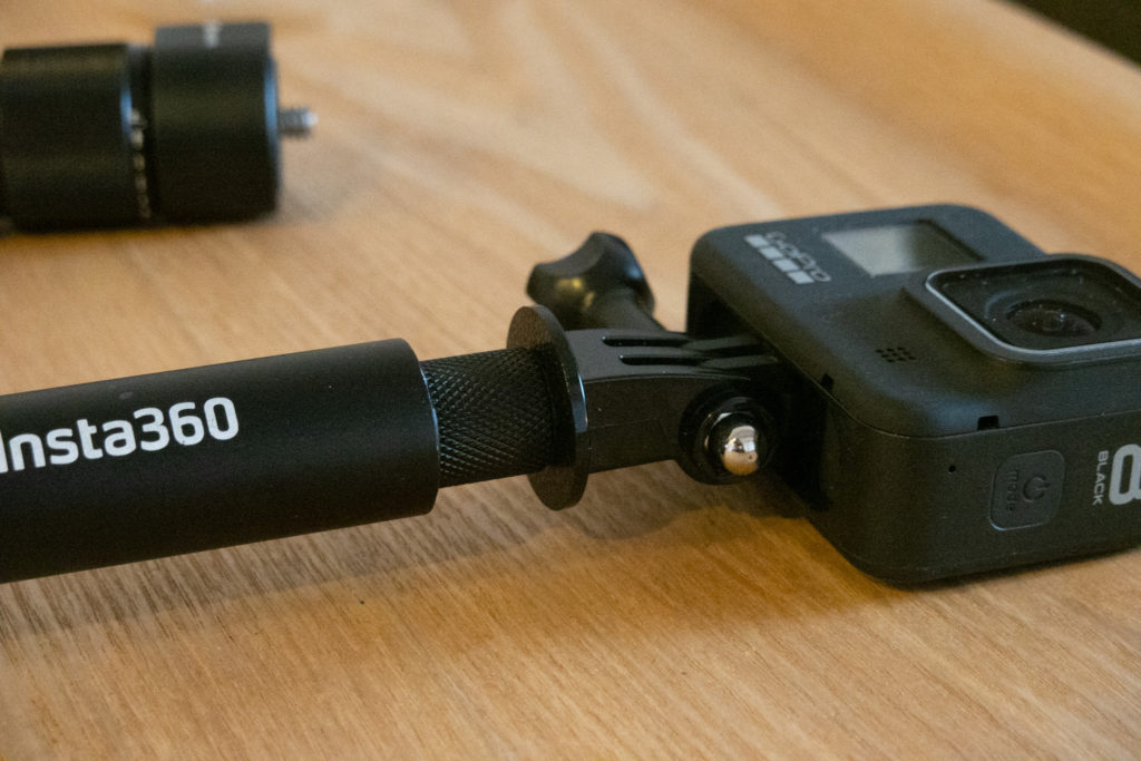 そこでネジ穴付きマウントをGoProに取り付けることで、自撮り棒を取り付けることができます。