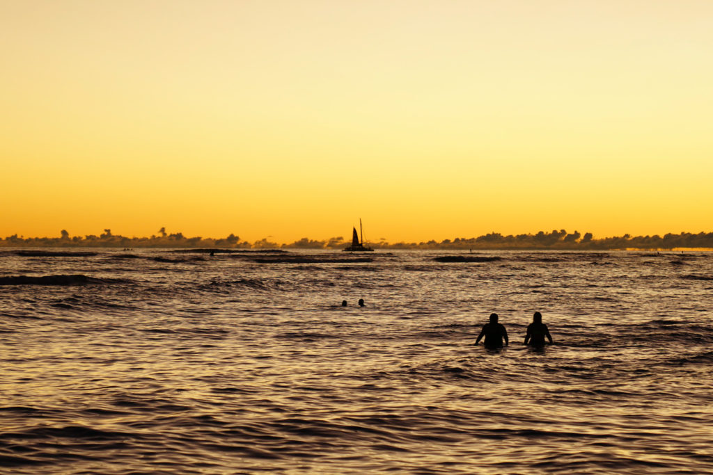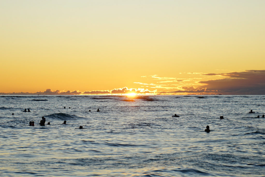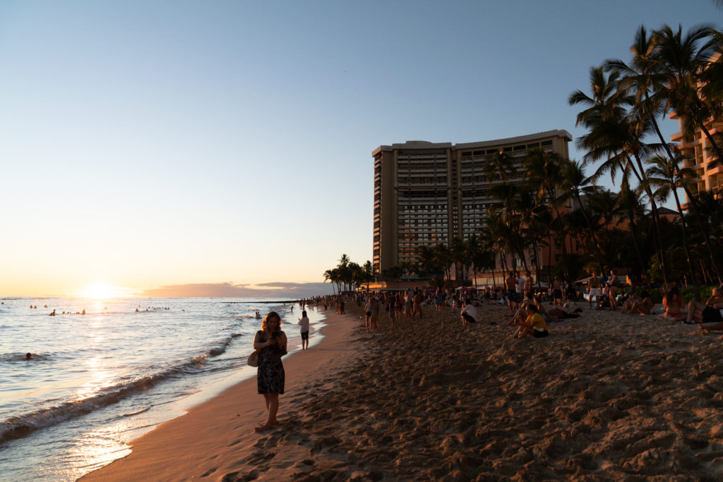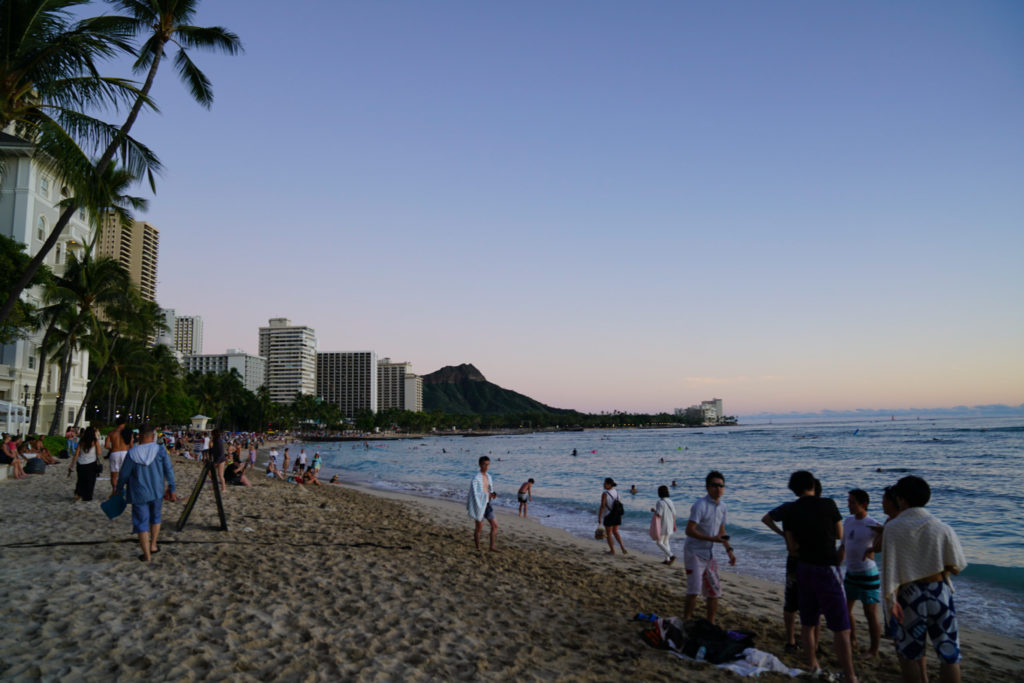 ワイキキビーチは夕暮れになると、また違う顔を見せてくれます。