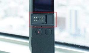 • ケーブルを接続する箇所が両サイドにあり、ここから充電をしたり、iPhoneと接続して、iPhoneから専用アプリでOsmo Pocket を操作することができます。